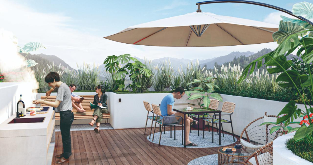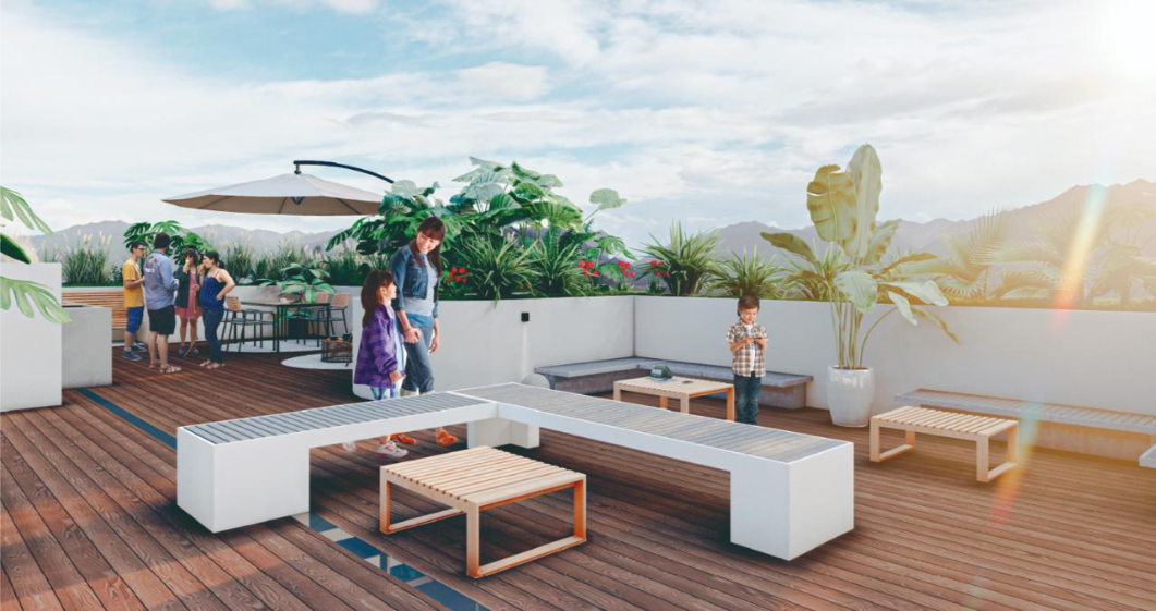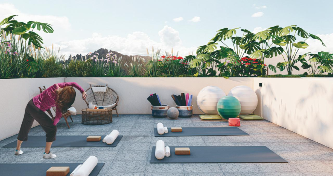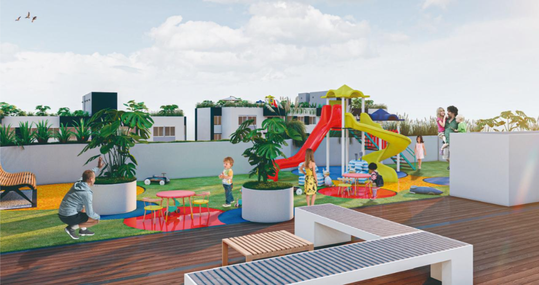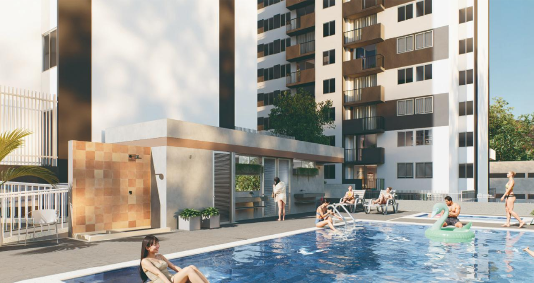 Está compuesto por dos torres de 15 pisos rodeadas por zona de protección ambiental (Reserva, la cual garantiza la NO construcción de edificios cercanos), con 113 apartamentos en cada. En el primer piso contamos con una zona comercial de doble altura. Del piso 2 al 14 tenemos 8 apartamentos por piso, todos separados entre ellos por vacíos los cuales brindan mayor privacidad a cada una de las unidades residenciales además de servir como entradas de luz y ventilación al interior del edificio. En el piso 15 se encuentran 4 pent-house por torre. Cada edificio cuenta con dos ascensores de gran capacidad, dos escaleras, corredores iluminados y ventilados naturalmente, accesos y porterías independientes. En la terraza del segundo piso, que une las dos torres a esa altura, encontramos la zona social, que la componen: una cancha de microfútbol sintética, parque infantil, gimnasio, baño turco, sauna, piscina para adultos con jacuzzi, piscina para niños, ambas climatizadas con acabado sin fin, un salón social, jardines y caminos de uso peatonal entre las torres.